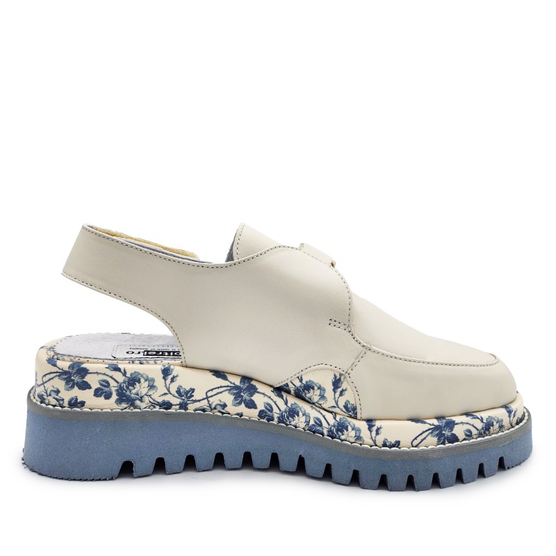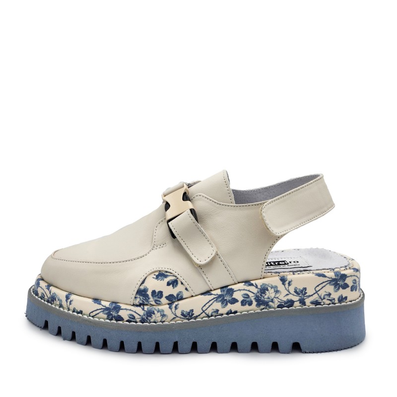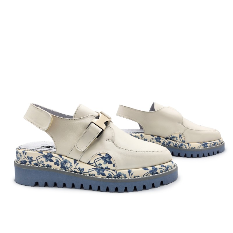 Floral Shoes In Beige & Blue