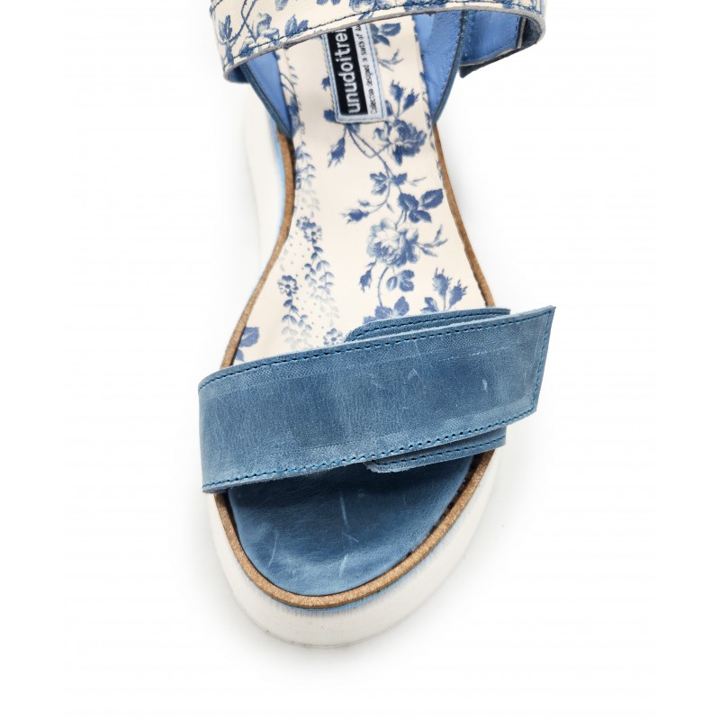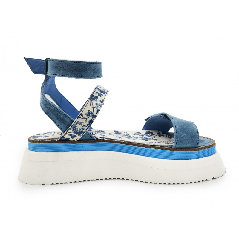 Straps Sandals in Blue Floral Leather