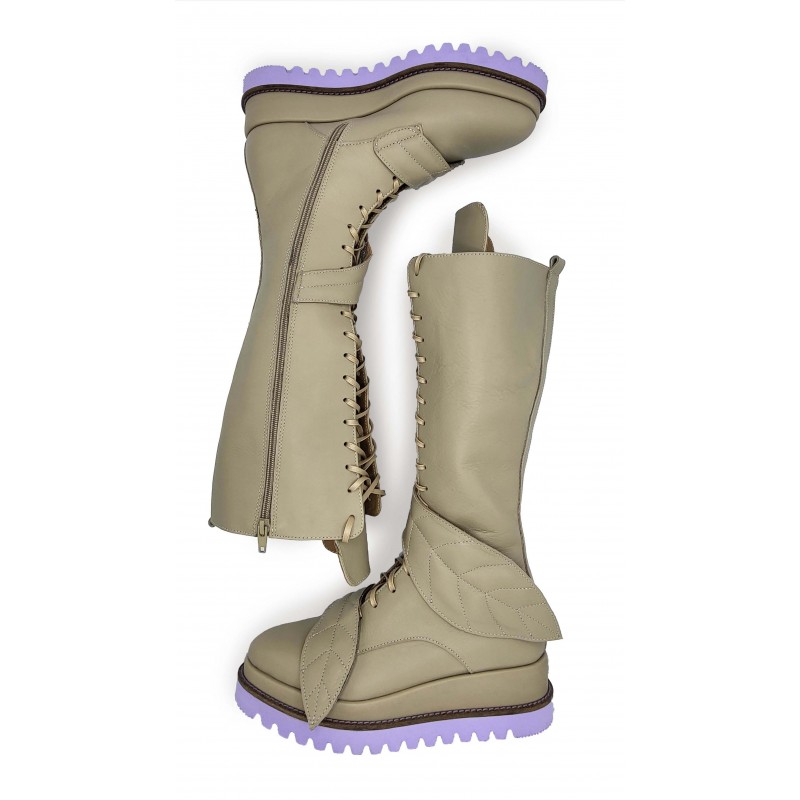 -Beige Leather upper sole;