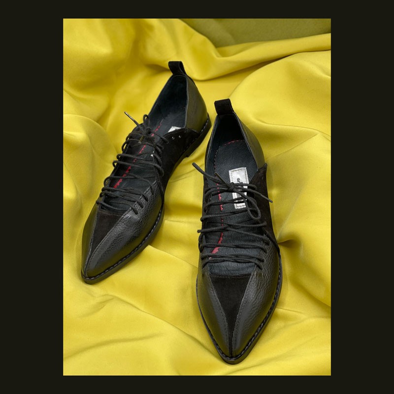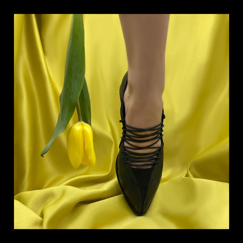 The esthetic of this collection is a mishmash between vintage and contemporary fabrics that bring us closer to Romanian traditions. From the macrame to the usage of rural elements: such as wings, pigeons, walnut leaves; we created a traditional upcycled shoe niche that circle back to our origins.