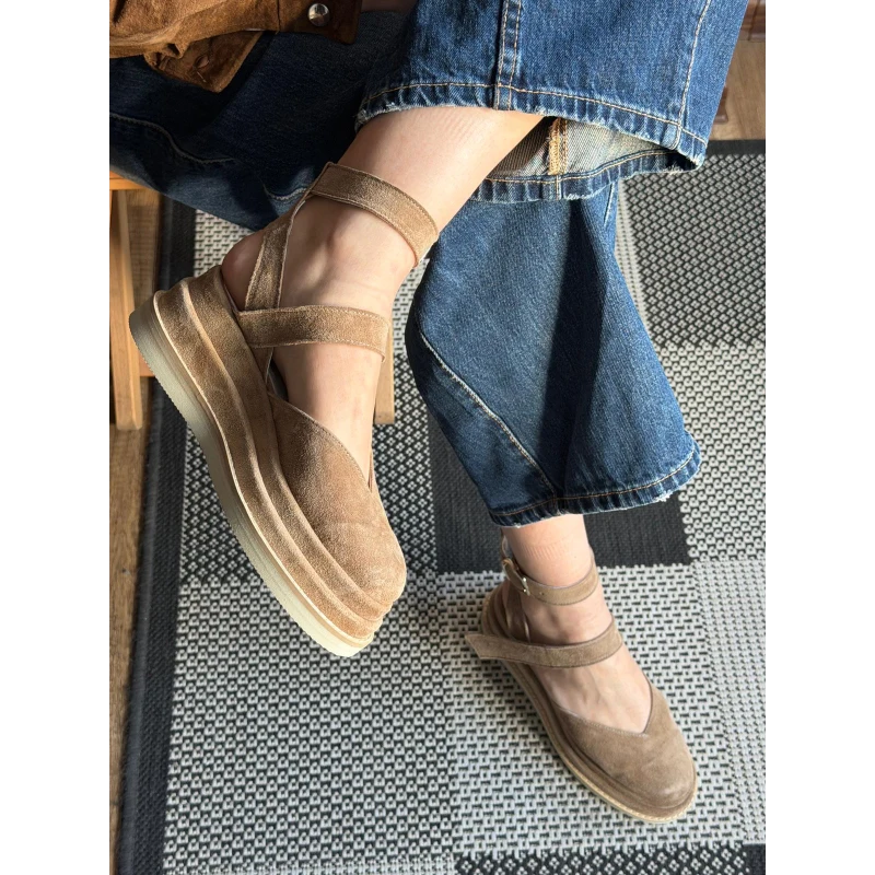 -Light beige outsole and velour upper sole