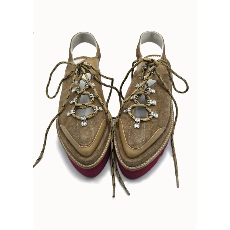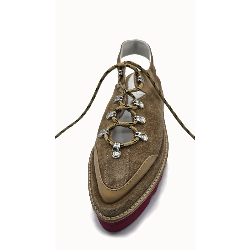 Pantofi din piele naturală, în nuanță sand, definiți de detalii inspirate de trasee și mișcare. Un model cu personalitate, unde designul capătă direcție.