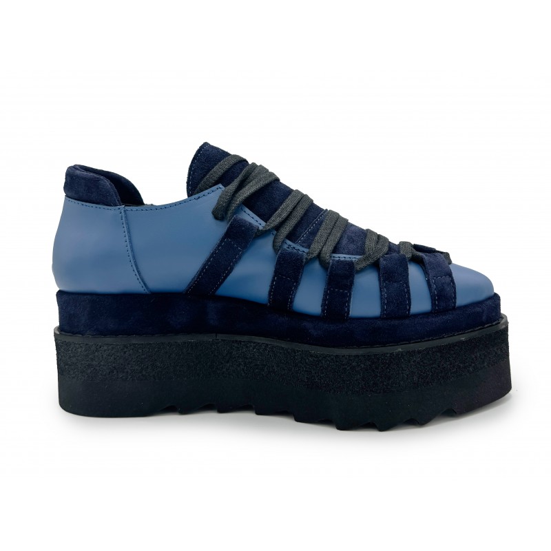 Crafted leather shoes in blue. Comfortable and smooth for everyday wear.