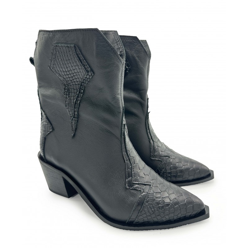 Crafted leather boots in black. Comfortable and smooth for everyday wear.